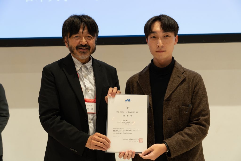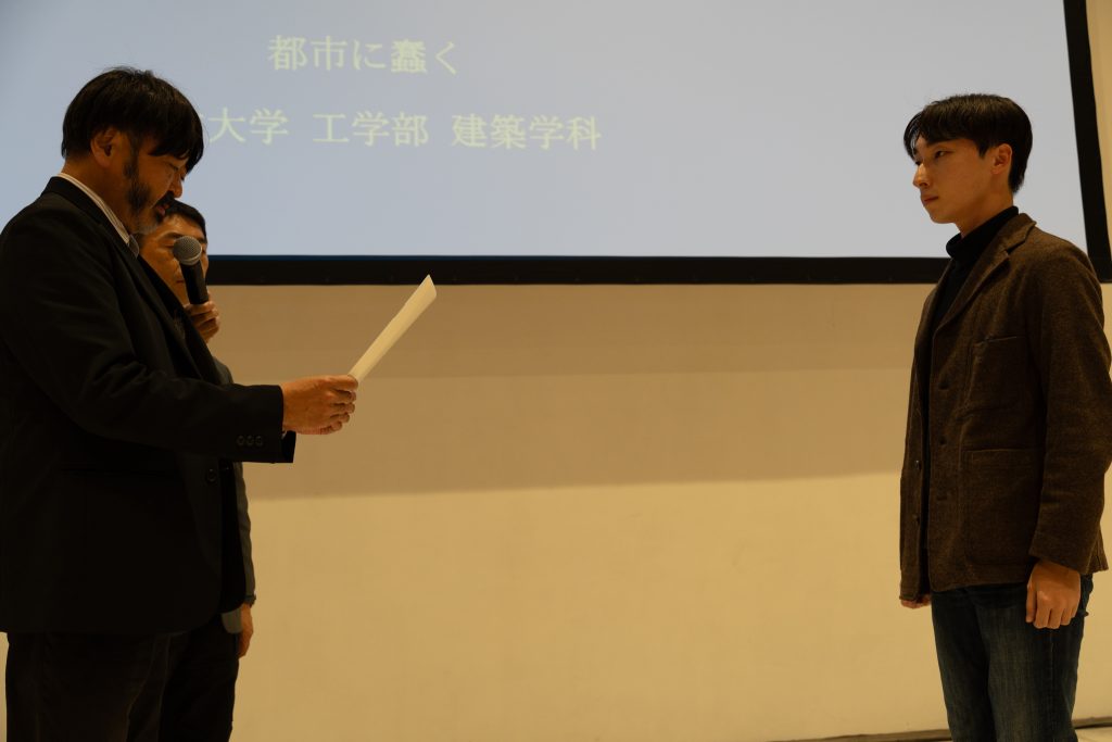 2025年10月30日に第29回JIA東北建築学生賞審査会がせんだいメディアテークで行われ、建築学科3年の山口昂輝さんが優秀賞を受賞しました。