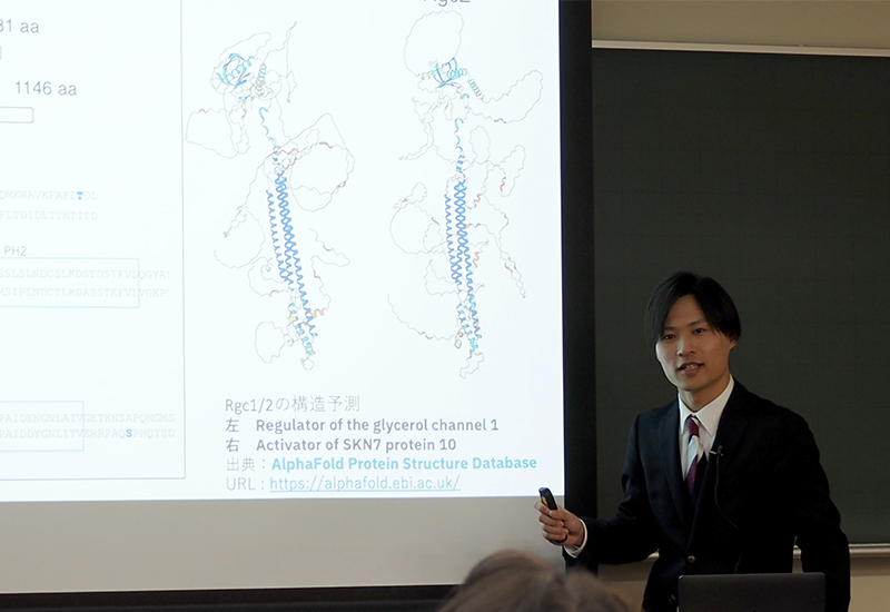 高校時代にホームページで分子遺伝学研究室を知りました。元々生物に興味があったので、優れた教授陣が最先端の実験から生命現象を解き明かしていることに興味を持ち、その後の説明会やオープンキャンパス等に参加。化学・物理・生物を広く学ぶことができる、教員らのサポートが手厚いことなどから生命応用化学科を選びました。学部での岸努教授の授業が非常に面白かったこと、研究で新しい生命現象を観測できたことでさらに専門的に学びたいと思い大学院に進学しました。