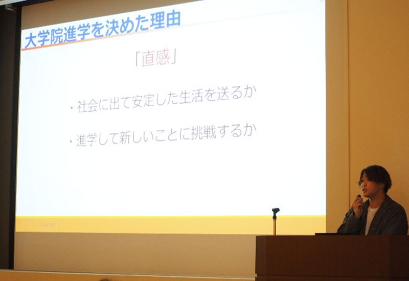 次に、4年次生3名が登壇し、大学院進学を決めた理由などについて語りました。