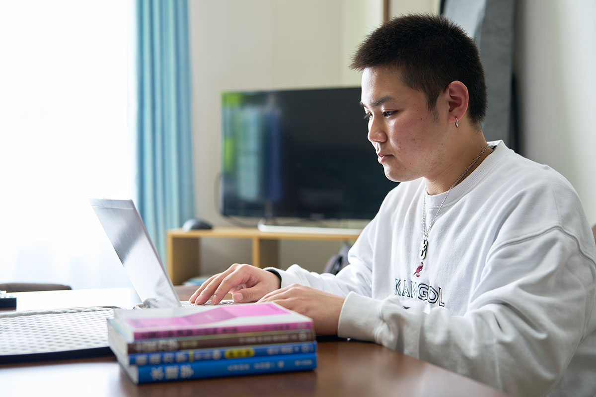 自分の可能性を試してみたかったんです。どこまで一人でできるのか、精神的なことも経済的なことも含めてすべてがチャレンジです!地元を離れての一人暮らし。この経験はきっと自分の糧になると思います。家賃は奨学金を充当し、アルバイト代と実家の農業の手伝いで生活費を賄っています。