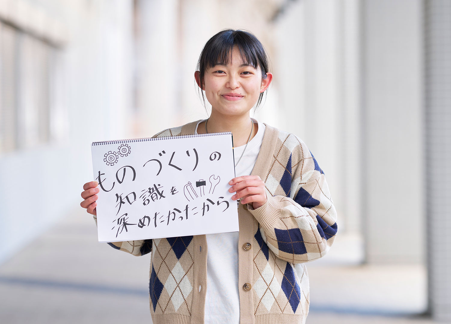 新しい価値、材料、技術などを作り出す研究や実験をしたくて志望しました。