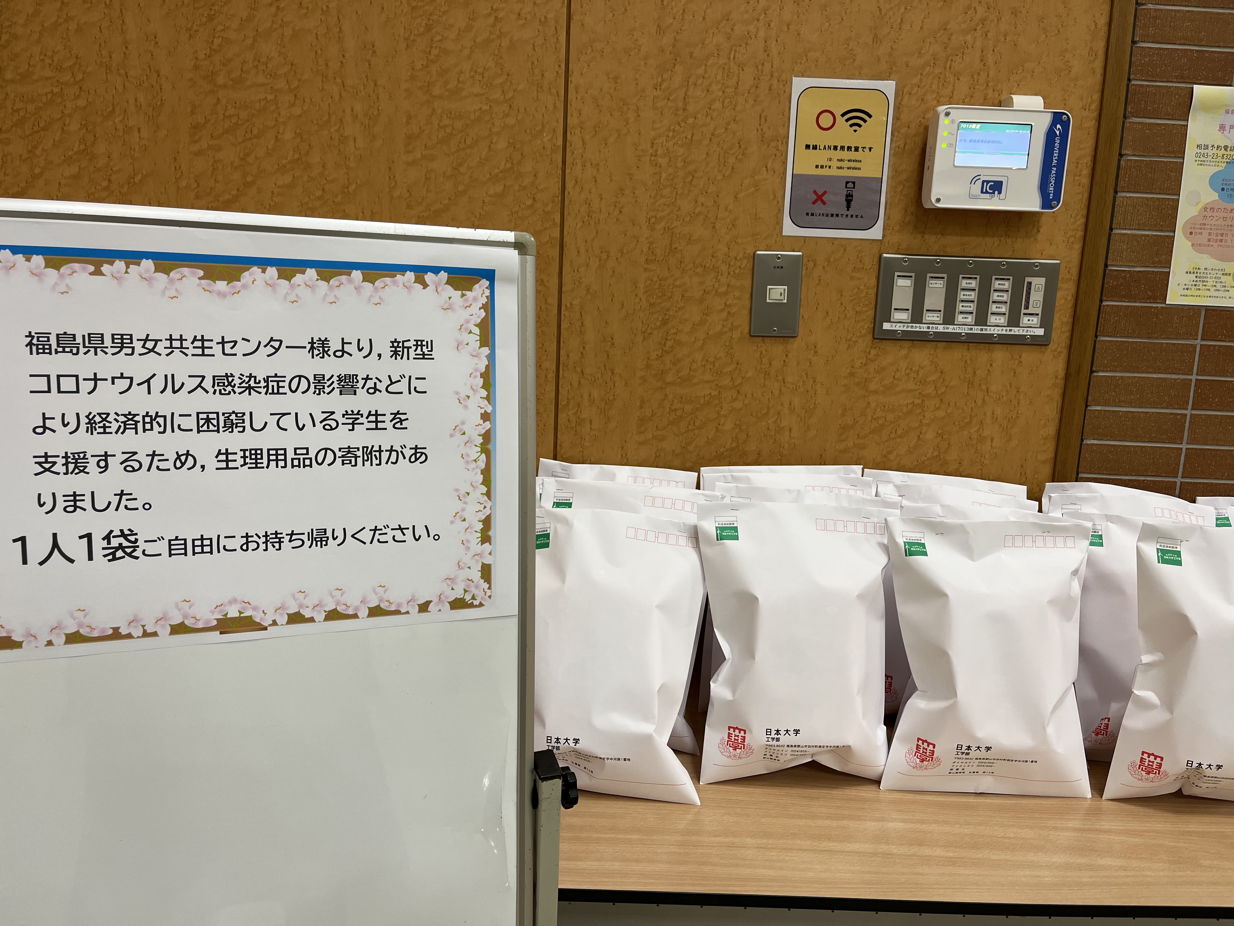 男女共生センター様から無償提供があり、生理用品を約300名の女子学生に無料配布しました。
