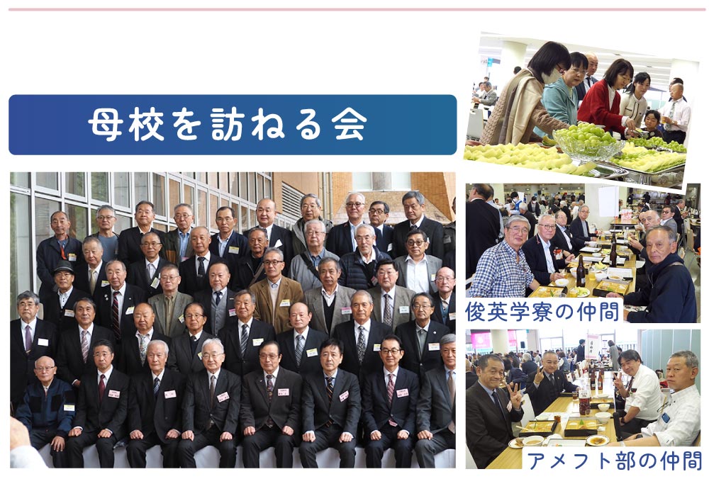 『母校を訪ねる会』は卒業後50年から10年刻み、5世代に渡る卒業生を対象に、毎年北桜祭と同日に開催しています。本年度は、総勢160名の皆さまにご参加いただきました。
