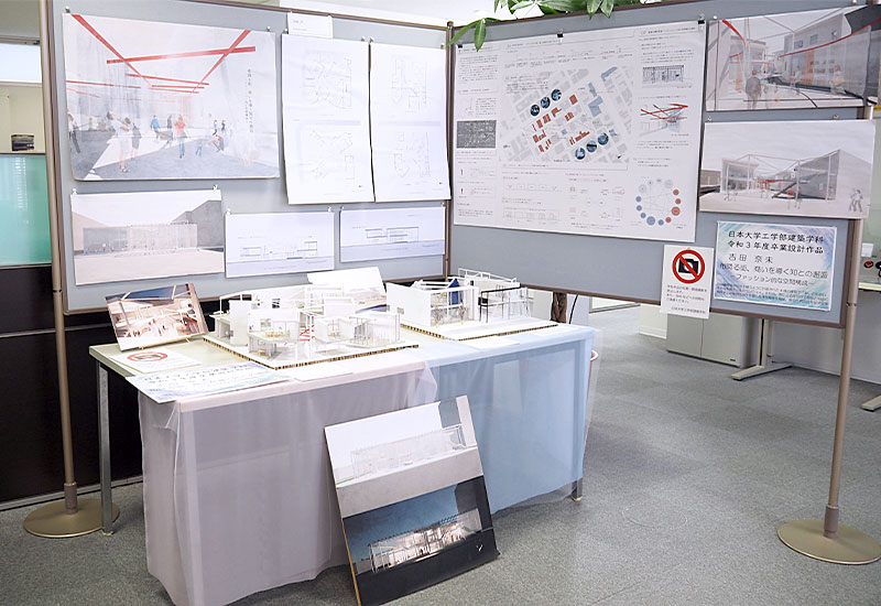 この度、日本インテリア学会 『第29回卒業作品展』において、2021年度建築学科卒業の吉田奈未さん(建築計画研究室/指導教員:浦部智義教授)の作品『布降る街、商いを導く知との邂逅 ―ファッション的な空間構成―』が優秀作品賞を受賞しました。この作品は、学部4年の卒業設計で取り組んだもので、学内の卒業設計優秀作品10点にも選ばれていました。その中で最もインテリアの要素を建築空間に上手く取り入れた秀逸なデザイン性から、日本インテリア学会第29回卒業作品展に出展され、国内の大学を主とする全国48の教育機関の代表作品が出展する中で、見事、最優秀に次ぐ優秀作品賞に輝きました。街の特性を建築化するような手法で、インテリアと一体となった新しい街への衣替えを意識した作品で、繊維問屋街、街なかの卸売団地の更新を、建築のファッション性の可能性に絡めて表現した点が高く評価されました。