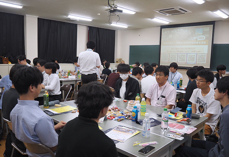 7月5日(金)、建設コンサルタンツ協会東北支部若手の会と土木工学科の学生たちとの交流会が、工学部8号館3階土木ゼミナール室で行われました。建設コンサルタンツ協会東北支部若手の会は、東北地方や建設コンサルタント業界の「これから」について、若手技術者が議論を交わし、交流を深める場です。メンバーは東北地方の広域および地域コンサルタントに属するメンバーで構成され、業界の将来を自ら考え行動し、業界の魅力を若手目線で発信していく活動を行っています。今年3回目となる『日本大学生×建設コンサル若手技術者 交流会』。
