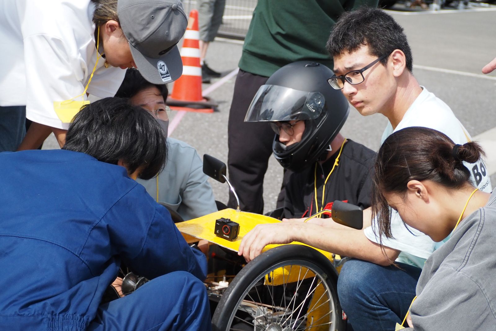 次世代の新しい乗り物の提案を目的に、国内のエコ競技大会、デザインコンテストに参加している、機械工学モノづくり工房モビリティデザイン部会。昨年度は目標としていた『Ene-1』への出場は果たしたものの、思うような記録が出せず悔しい思いをしたメンバーたち。今年こそはという思いを胸に、5月24日(土)に福島県エビスサーキットで開催された大会『2025 WEVC(World Electric Vehicle Challenge) in EBISU』に臨みました。結果はいかに・・・。