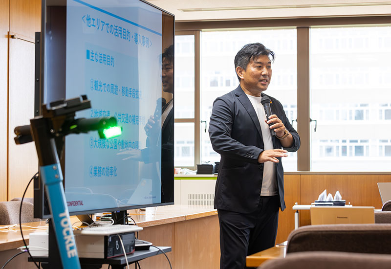 10月4日(土)10:00より本館3階 第一会議室において、課外講座「次世代モビリティーと郡山で挑戦する新たなまちづくり」のガイダンスと講演会が開かれました。本学部は令和5年から郡山市、BRJ株式会社との三者協定「電動キックボード導入社会実験の共同研究にかかる連携協定」を締結し、電動キックボードの機体制御、安全性検証、運用手法検証等にかかる実証データの分析を行ってきました。ここからさらに発展させた産官学の連携事業が今回の課外講座のひとつとなります。