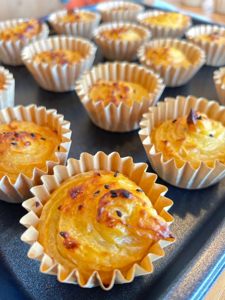 ホールでは,地元のJAさくらさんの協力のもと,学内の「ロハスの畑」で循環型農業の実証実験として栽培したサツマイモを使用し,学生考案の自家製「スイートポテト」が無料で楽しめ,学生・生徒から大好評です。