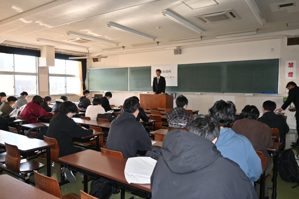 12月12日(金),静岡県の島田市役所さまと本学部進学アドバイザーの永田進氏の連携協力により,公務員に関心がある在学生を対象とした『島田市役所職員採用セミナー』が行われました。