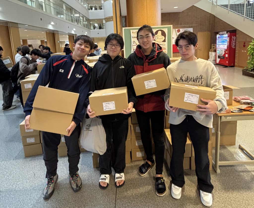 12月22日(月),オープンキャンパス実行委員会は,「フードロス削減プロジェクト」の一環として,災害備蓄品の無料配布を行いました。この災害備蓄品セットの配布は11月に引き続きの実施となりました。この活動は,「まだ食べられるのに捨てられてしまう災害備蓄品を有効活用したい」という実行委員会の強い思いから企画されました。