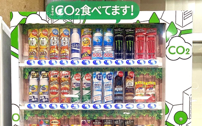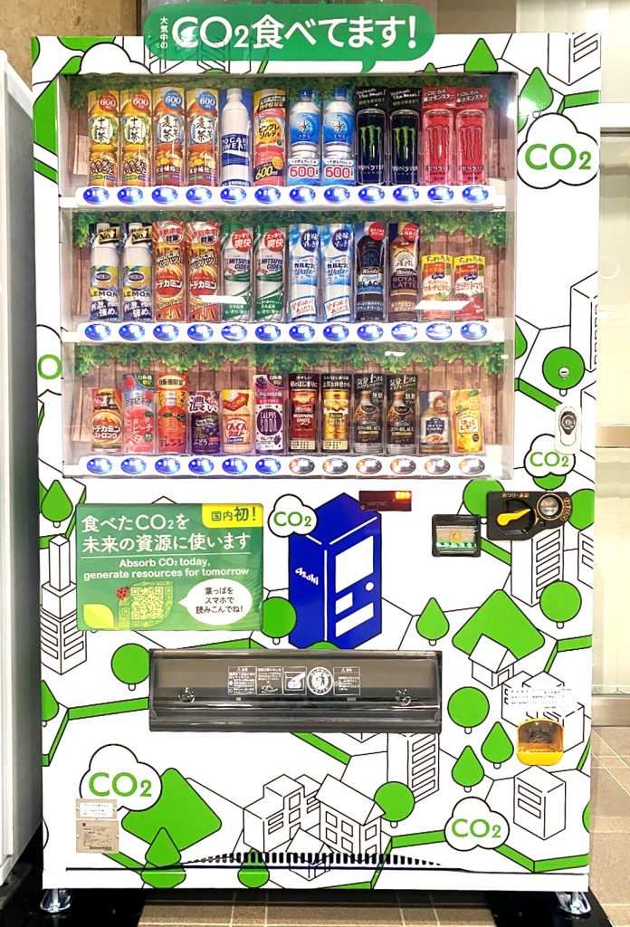 この自動販売機は,アサヒ飲料株式会社が開発したもので,自動販売機内にCO2を吸収する特殊な材料を搭載しています。これにより,大気中の二酸化炭素を吸収できるようになっています。アサヒ飲料では,この取り組みを「都会の中に森をつくる」計画の一環と位置付けています。