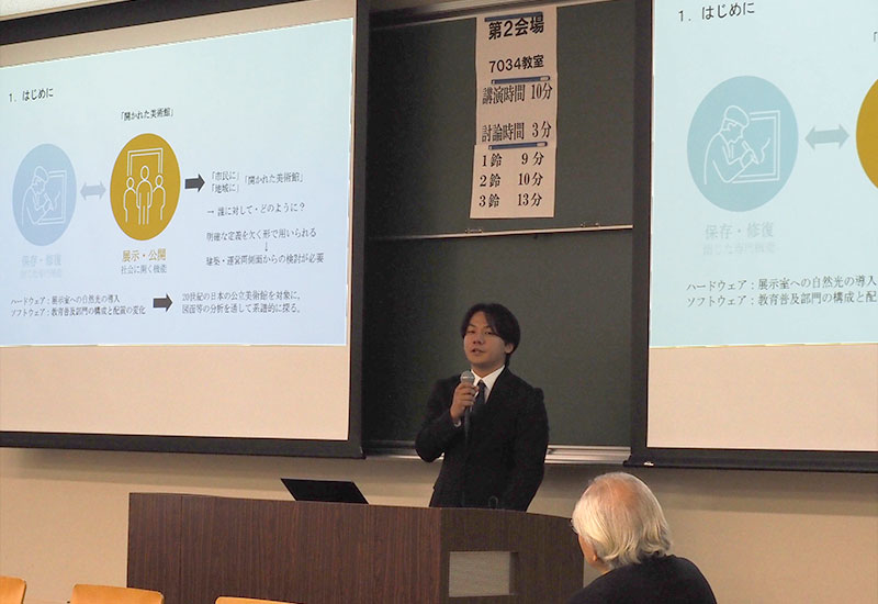 本年度は校友も含め、215件の研究が報告されました。各部会の会場では活発な質疑応答が行われ、今後の研究活動に向けた刺激となっていたようです。