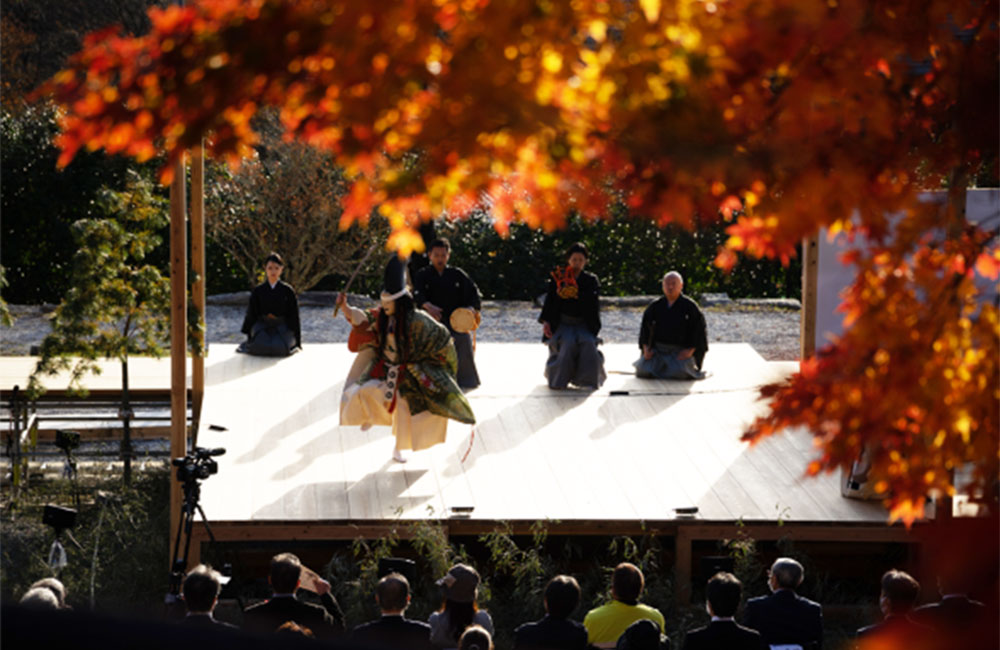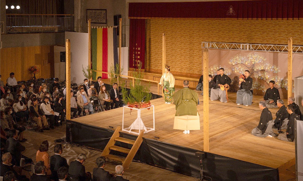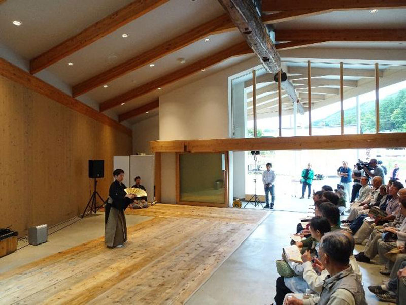 ポータブルな舞台建築により季節や状況に応じ屋外・屋内共に質の高い能楽空間を具現化できる自由度の高さがあり、各回とも、上演時の場所やその特性などについて丁寧に調査した上で、能楽の演出性や合理性なども鑑みた、質の高い能楽空間を創出しています。また、初回の2019年には公演に先だち、出演者による「能楽ワークショップ」を開催するなど、舞台以外でもイベントを通して村内外の交流の輪を広げる機会を創出する、“ことづくり”にも一役買いました。
