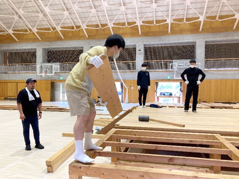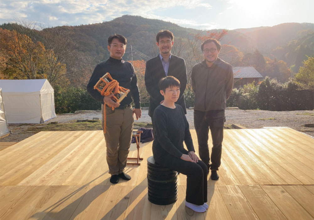 これまで、『産学官⺠の連携による「ロハスコミュニティ」の構築と実装』のプログラムを具現化する大きな取り組みの一つとして、葛尾村では、私たちが計画・設計に携わった、復興交流館「あぜりあ」を中⼼とする交流拠点づくりの継続やその利活用による地域内外の交流促進による「交流の場づくり」を進めてきました。地域の中でイノベーションを生み出す高度な人材の長期的な教育・育成の基盤を構築することを⽬的とする事業でもあり、今回の受賞には、その実績も背景にあったと思います。2019年の実施時には、研究室の学生が仮設の能舞台の計画・設計や設置から、呈茶、アート制作などの運営面にも携わり、村⺠の方々と協力しながらイベントを盛り上げてくれました。2021年の際も、学生が仮設の能舞台の計画・設計・設置及び小道具の制作、また運営サポートなどで貢献しました。さらに高木義典研究員(浦部研究室)が中⼼となって、学生達と本番で使用する小道具である「葛桶(かづらおけ)」も制作しました。