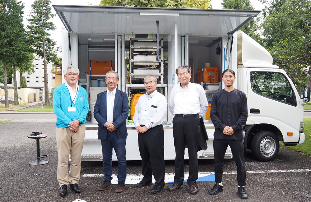 この度、日本大学工学部発ベンチャーが開発した「インフラに依存しない自立型トイレ洗浄水循環システム(e6sシステム)」を装備するトイレカーが完成しました。このe6s(エシックス)システムは、土木工学科中野和典教授による「ロハス工学を使ったトイレの研究開発(ロハスのトイレ)」をベースに、株式会社e6s(えしっくす:横浜市)が開発した、断水や停電時でも使える水洗トイレのシステムです。福島県及び公益財団法人福島イノベーション・コースト構想推進機構(福島イノベ)『令和6年度FukushimaTech Create (FTC) 事業』の支援を受けた開発成果であり、昨年12月には公共施設としては導入初となる第1号機が郡山市のビッグパレットふくしま(指定避難所)に設置されました。さらに、当システムが移動できるように、神奈川トヨタ自動車株式会社と共同で車載式を開発。電源は屋根に太陽光パネルを載せた自立型であり、温水洗浄便座付の大便器と小便器の2基のトイレを設置する、モバイルトイレが新たに完成しました。
