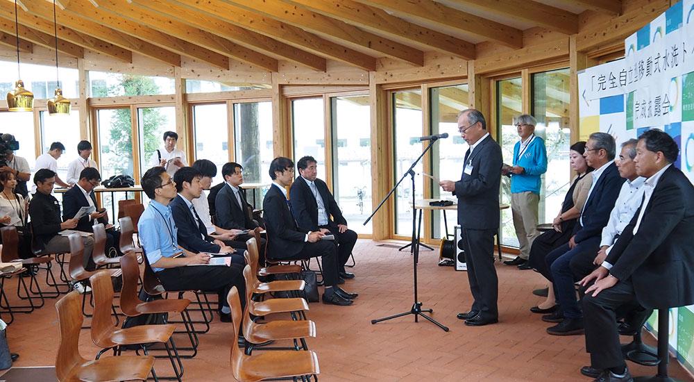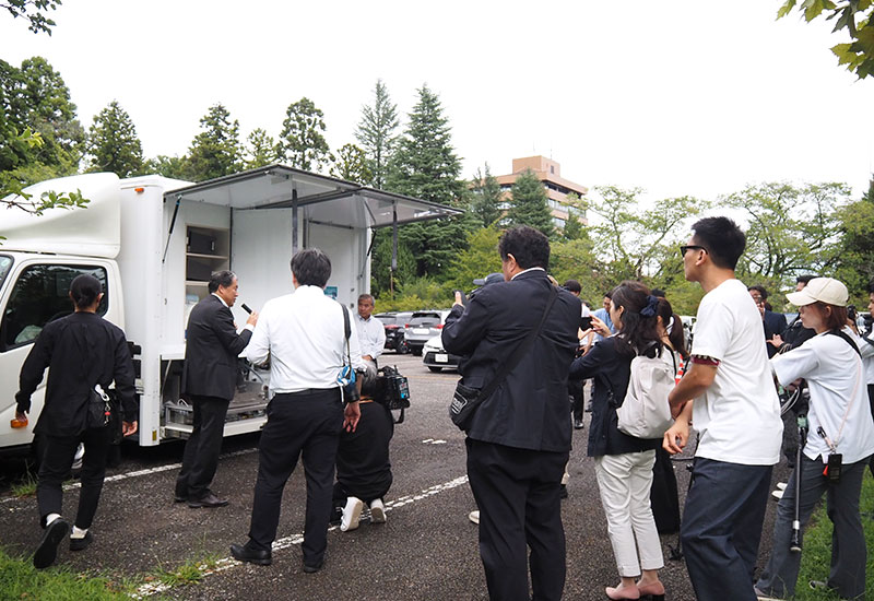 「完全自立型移動式水洗トイレ」への関心度は高く、披露会の模様は多くのマスメディアに取り上げられました。中野教授は、「健康を維持するためにも、快適にトイレを使い続けられることは重要です。e6sシステムは、まさにロハスの観点からも、健康で持続可能なトイレだと言えます。日本の災害時だけでなく、世界中に安全安心なロハスのトイレを届けるために、引き続きe6sの性能向上と社会実装の促進に努めていきたい」とその思いを強くしていました。